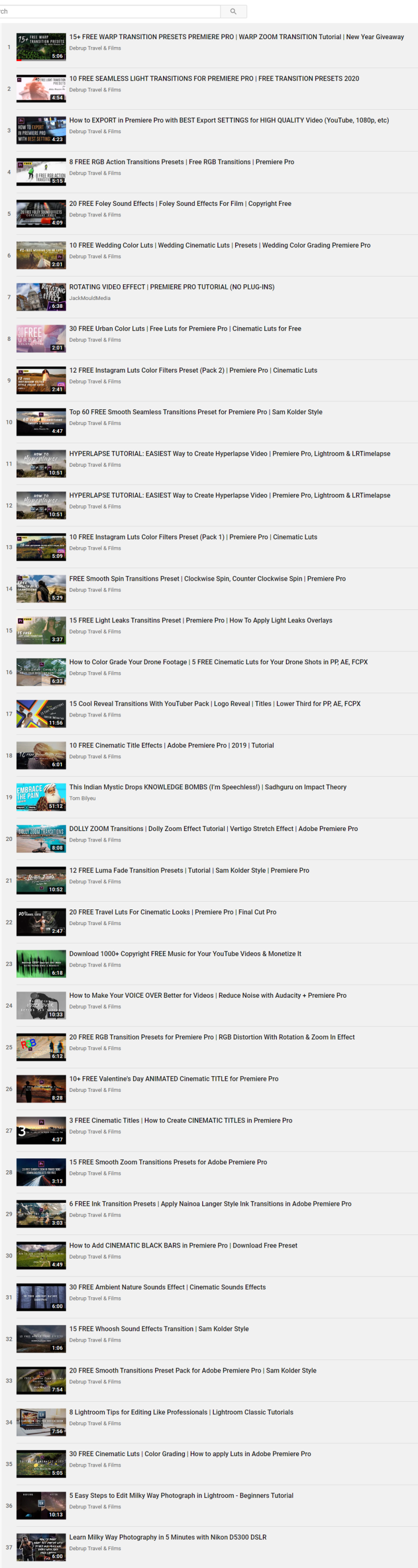 Hieronder de index van deze video's:
